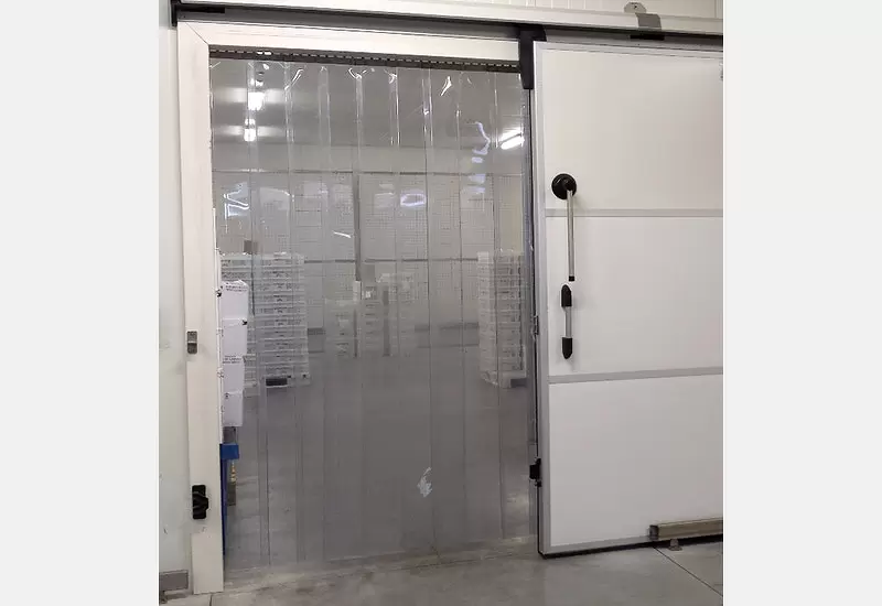 Così viene lasciata aperta la porta frigorifera e utilizzata la chiusura a strisce fino al termine della giornata lavorativa, quando verrà chiusa la porta manuale. Le chiusure a strisce sono particolarmente indicate per realizzare tamponamenti di vani di dimensioni notevoli. I materiali flessibili utilizzati, oltre ad un isolamento termico tra i vani interessati, permettono di isolare da polvere, vapori, fumi, rumore ecc, creando un diaframma che migliora sensibilmente le condizioni di lavoro negli ambienti industriali e commerciali.