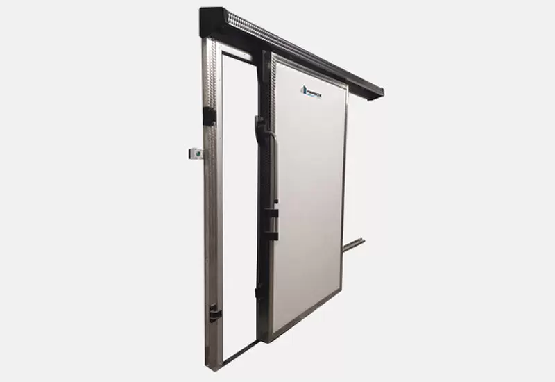 La versione standard viene realizzata con anta in poliuretano espanso sp. mm. 121, finitura in lamiera preverniciata bianca, telaio robusto in PVC, bordo battente e guida superiore di scorrimento in alluminio anodizzato, maniglia a leva in PVC con impugnatura a tubolare Inox, resistenza anticondensa nel telaio da 230V.